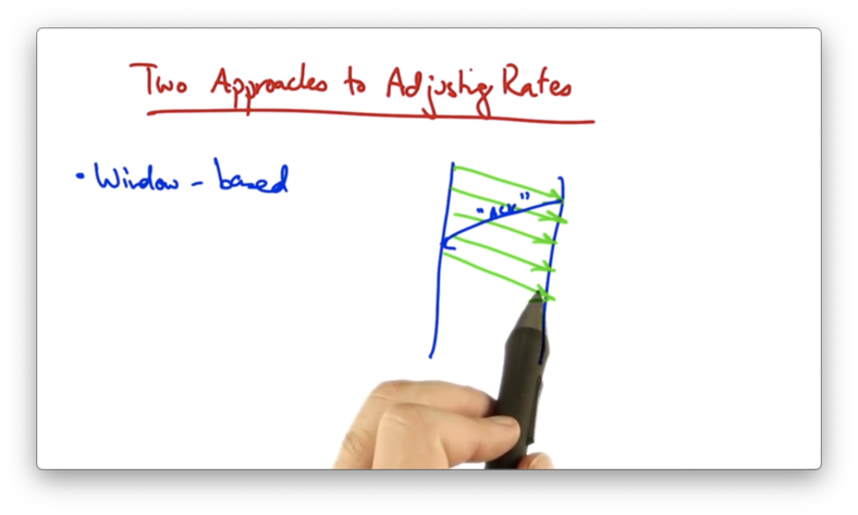One approach is a window-based algorithm. In this approach, a sender can only have a certain number of packets outstanding, or "in flight".