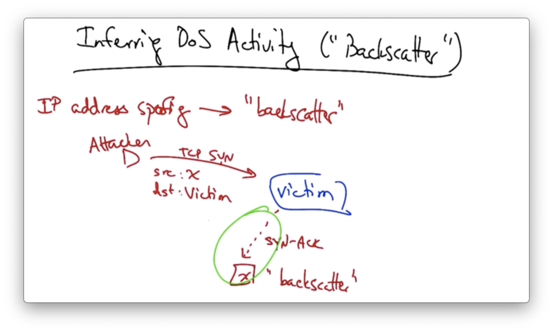 We can set up a portion of our network where we could monitor this backscatter traffic coming back as SYN ACK replies to forged source IP addresses.