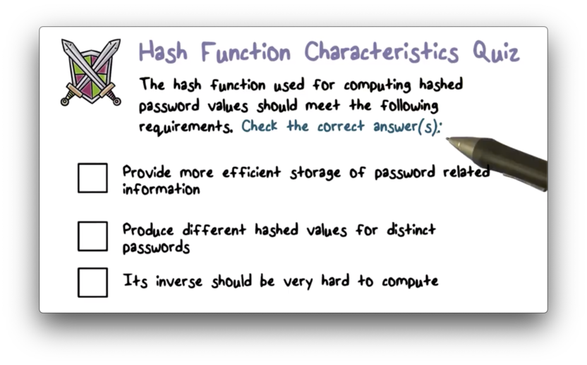Hash Function Characteristics Quiz