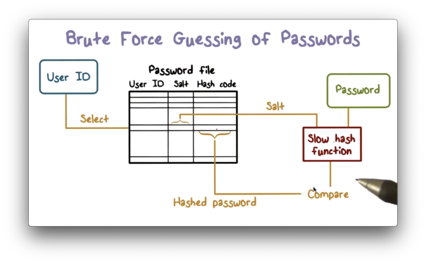 If an attacker has a system password file, how hard is it for them to brute force hash every single possible password?