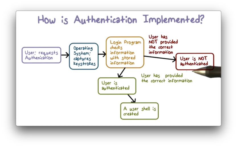 If there is a match between what the system knows and what a user provides, then the user is authenticated, and a user shell is created.