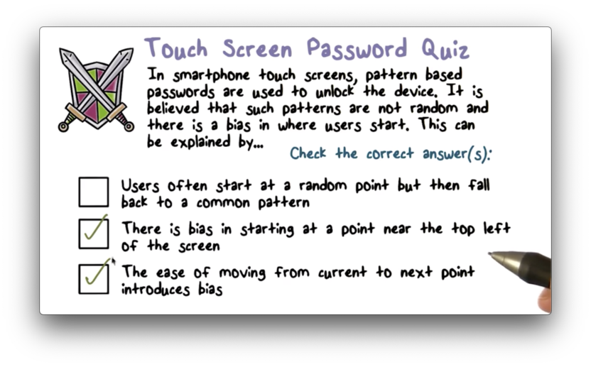 Basically, the idea here is that attackers will likely not have to exhaustively search the space of possible patterns because biases exist that greatly shrink this space into a much smaller space of much more probable patterns.