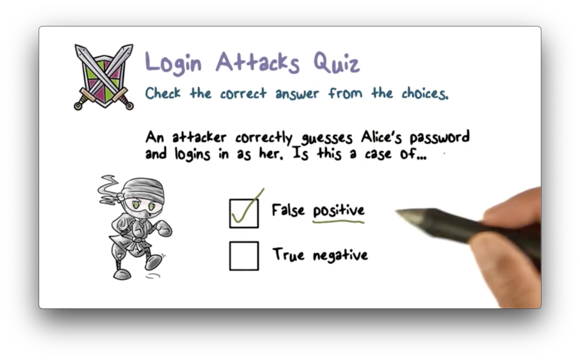 Remember, a false positive occurs when a malicious user is granted access to the system as a valid user. The likelihood of this happening decreases when multiple authentication components are employed by the system.