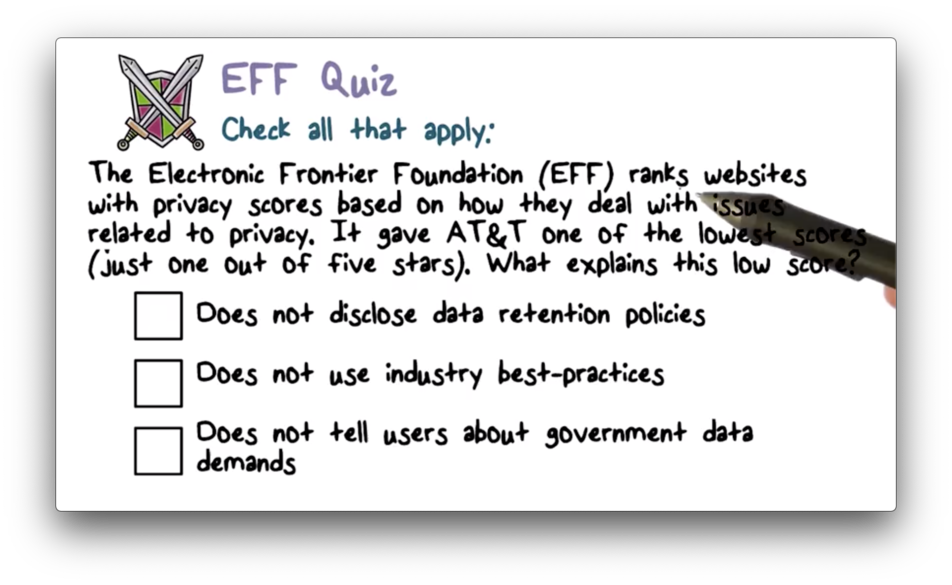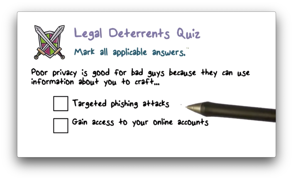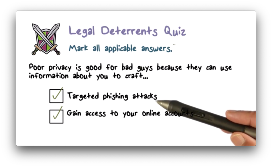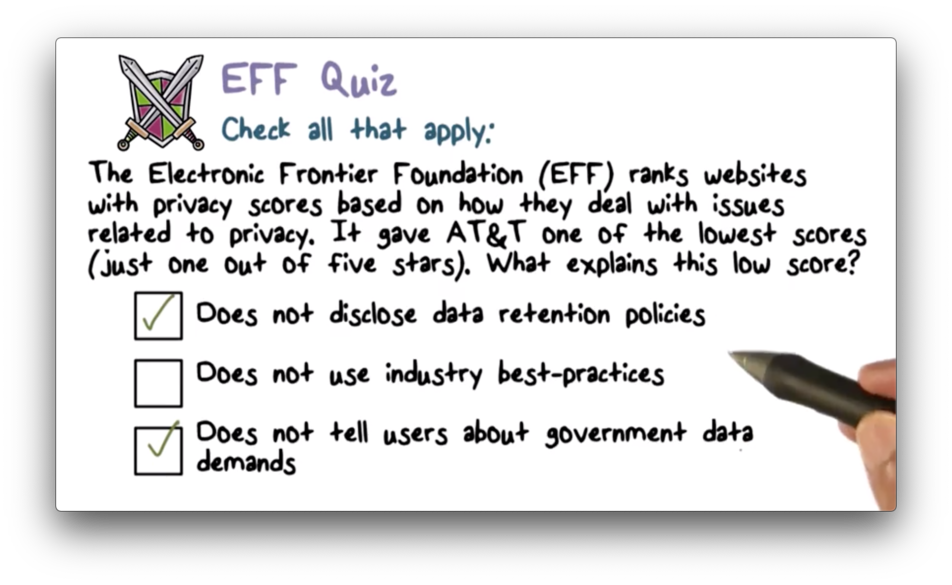 Perhaps a company has all the best intentions with our data. We might not be worried about them specifically, but we might want to examine their business partners and other entities with whom they share data. These partners may not use best practices for keeping our data safe from attackers, and the entities that they partner with might be even less professional.