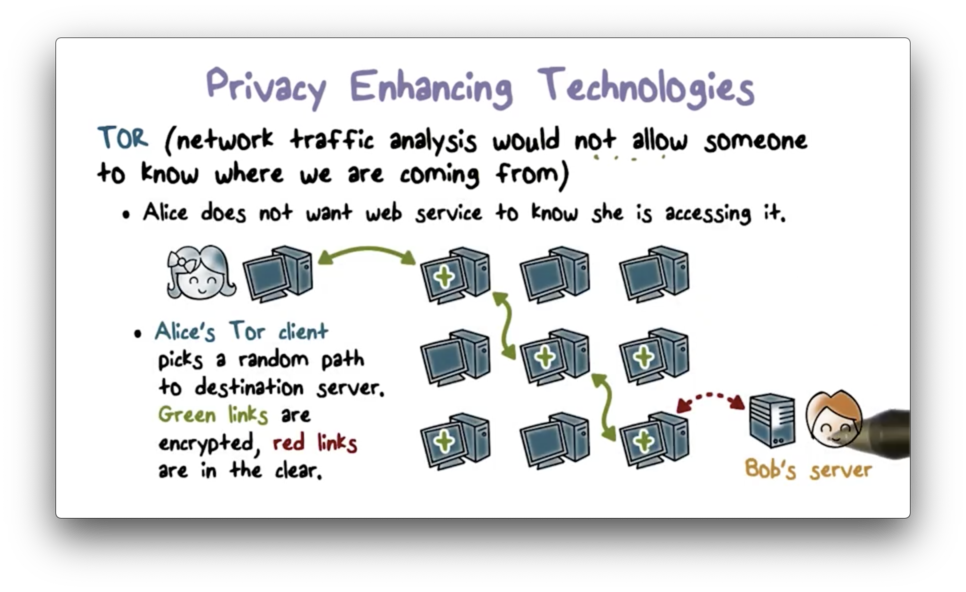 Because of this setup, we can use TOR to implement anonymous communication and prevent attackers from learning about the parties with whom we communicate.