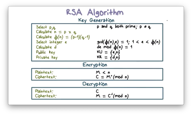 Here is a summary of RSA, including the key generation, encryption, and decryption steps.