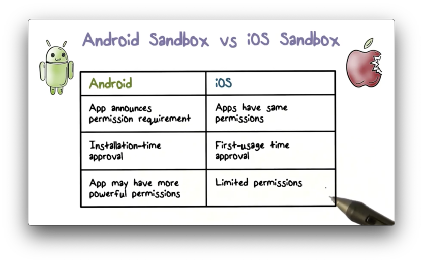 From a security perspective, one of the main differences between the Android and iOS sandbox is how they handle permissions.