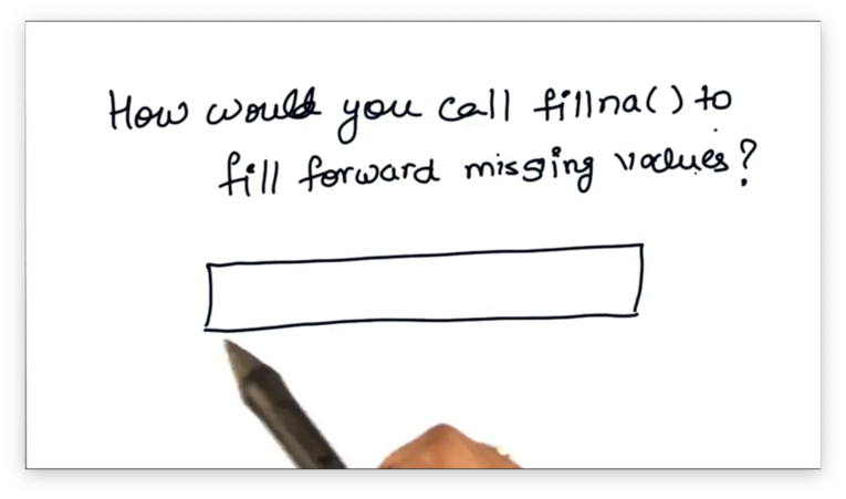 Our task is to find the parameter that we need to pass to fillna to fill forward missing values.