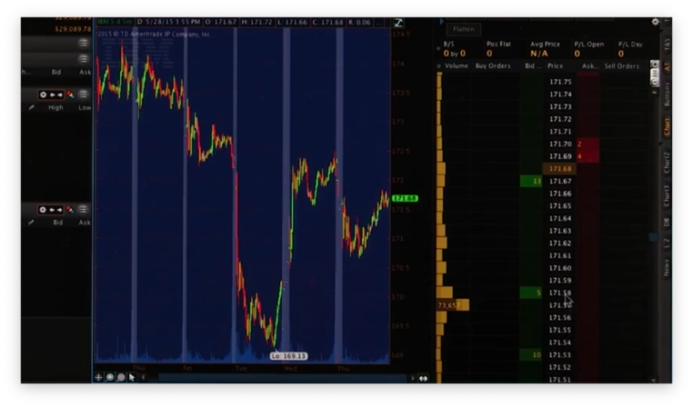 On the right-hand side, we can see different sell and buy orders and the corresponding execution prices. On the left-hand side, we see a chart depicting the price movement over time as the exchange fulfills these orders.