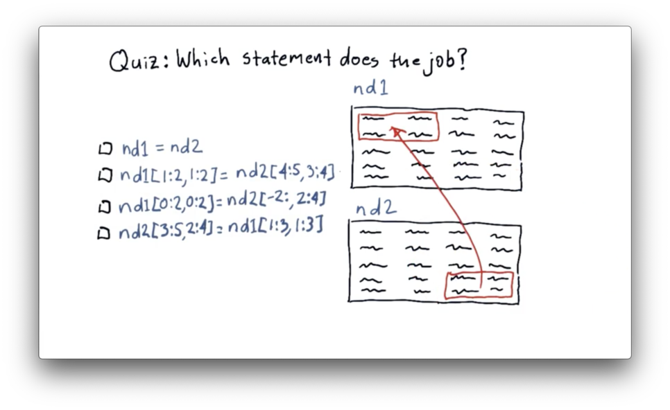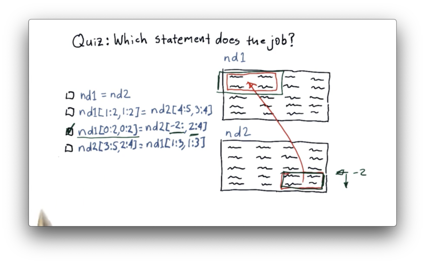 We need to move data from the last two rows and the last two columns of nd2 to the first two rows and the first two columns of nd1.
