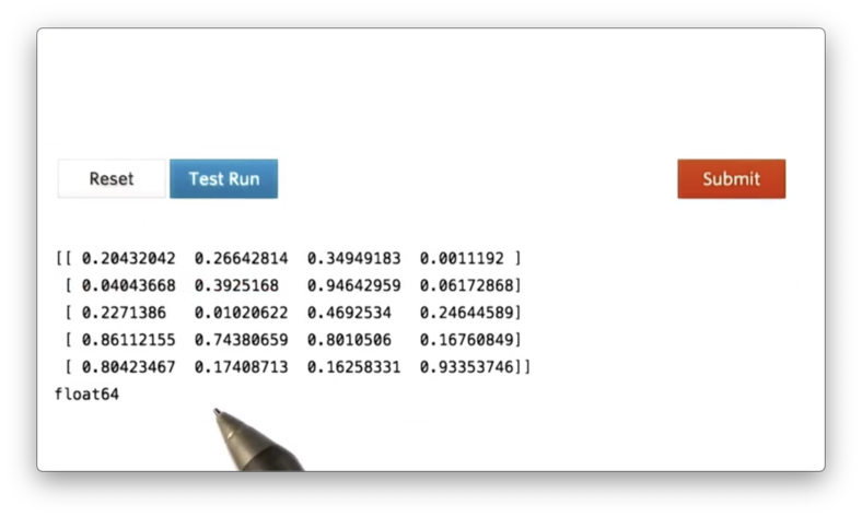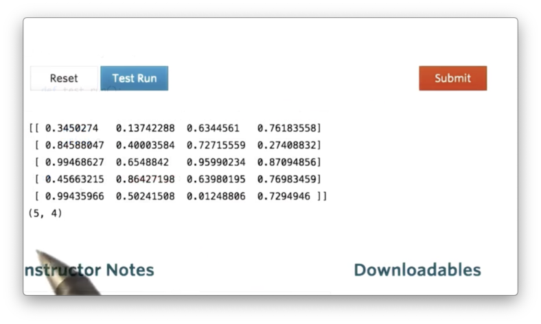 For example, we can generate such an ndarray with five rows and four columns using the following code: