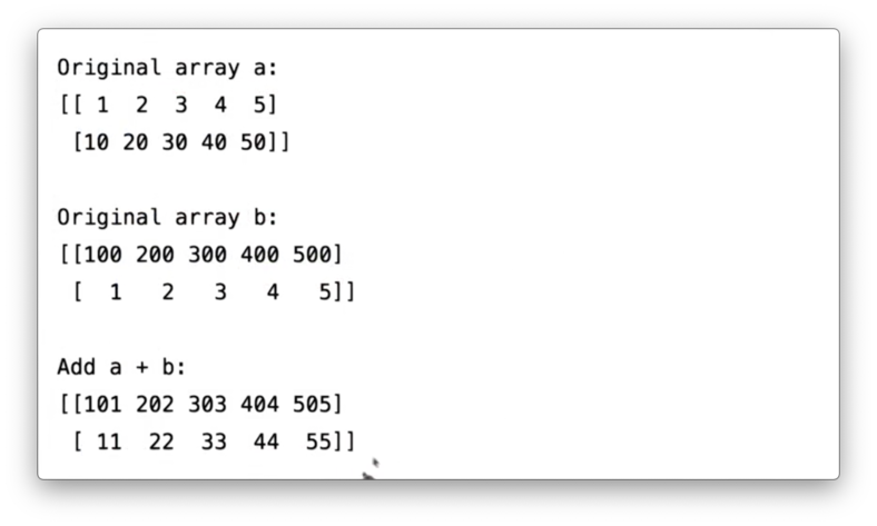 Our arithmetic capabilities are not limited to just operations between ndarrays and scalar values. We can also perform operations that combine two ndarrays. Let's create a second ndarray b.