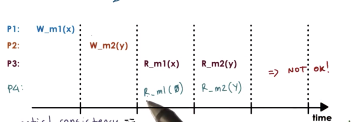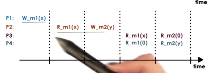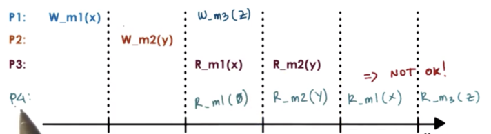 For example, it would not be possible for P4 to read Z at m3 and then read X at m3.