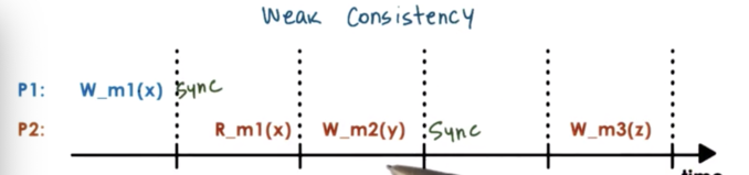 In the weak consistency models, it's possible to have additional operations for accessing memory.