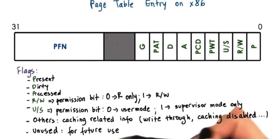 There are number of other bits that are present in the page table entry which the operating system uses to make memory management decisions and also that the hardware understands and knows how to interpret.