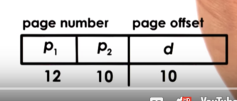 In this particular scenario, the address format is such that the outer index occupies 12 bits, the inner index occupies 10 bits, and the offset occupies 10 bits.