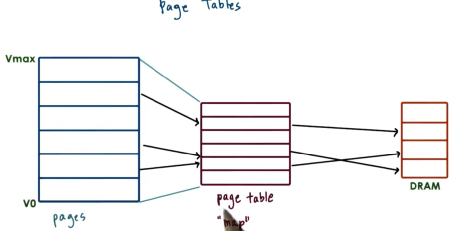 For each virtual address, an entry in the page table is used to determine the actual physical address associated with that virtual address. To this end, the page table serves as a map, mapping virtual addresses to physical addresses.