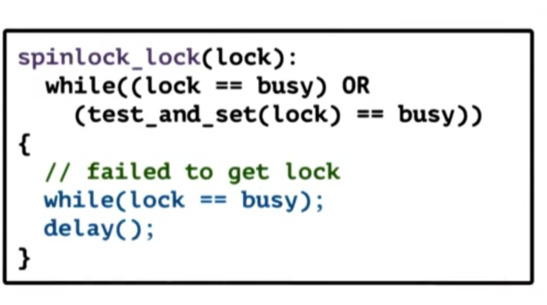 We can introduce a delay in order to deal with the problems introduced by the test_and_set and test_and_test_and_set spin locks.