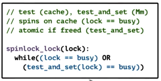 This spinlock is referred to as the test-and-test-and-set spinlock. It is also called a spin-on-read or spin-on-cached-value spinlock.