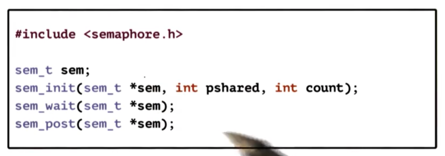 The simple POSIX semaphore API defines one type sem_t as well as three operations that manipulate that type. These operations create the semaphore, wait on the semaphore, and unlock the semaphore.