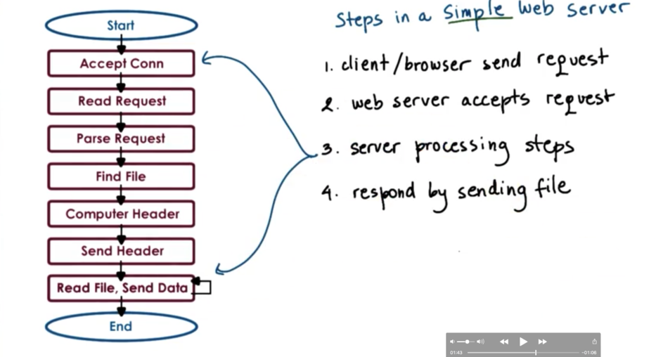 Steps in a web server response flow