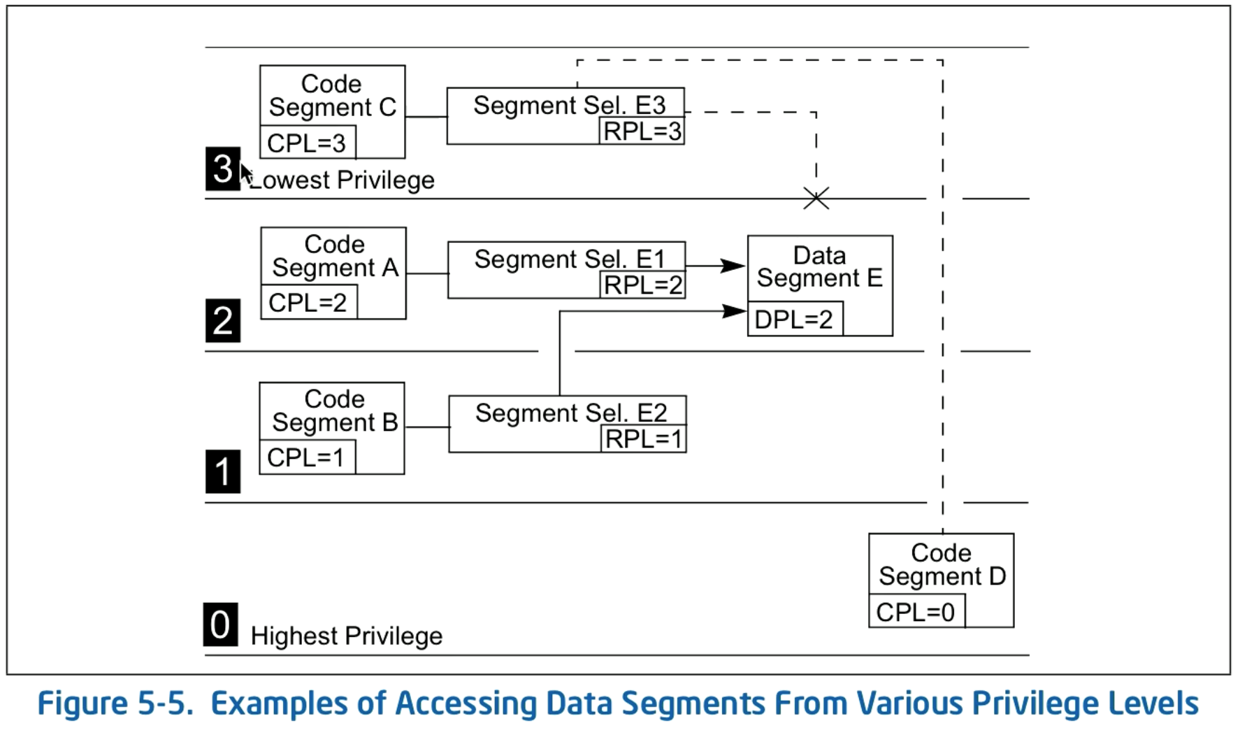 Each segment contains protection level information about the segment, called the segment descriptor protection level (DPL).