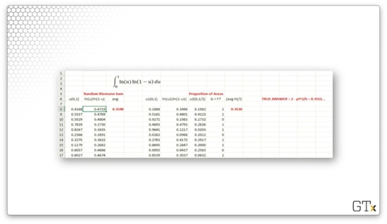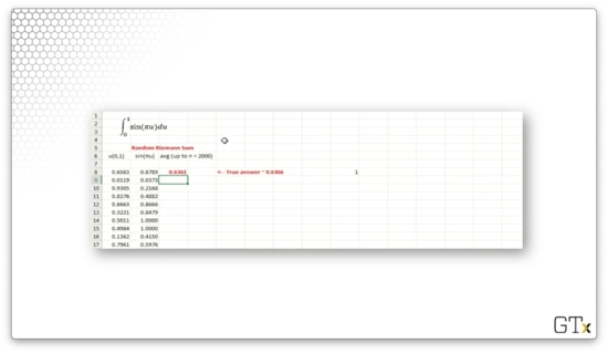 Consider the following spreadsheet, focusing only on the "Random Riemann Sum" section.