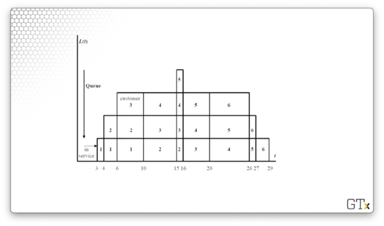 We can compute the average waiting time for these six customers by taking the average of the $W^Q_i$'s: